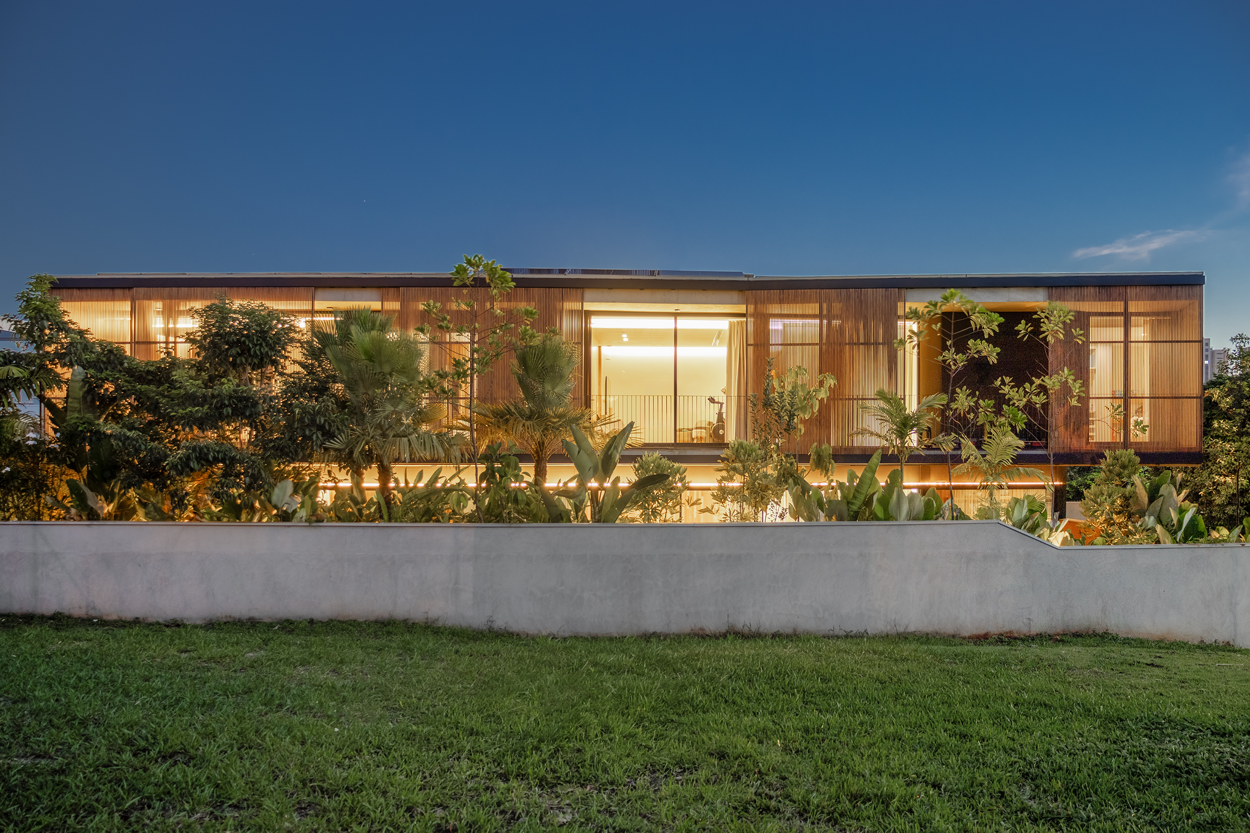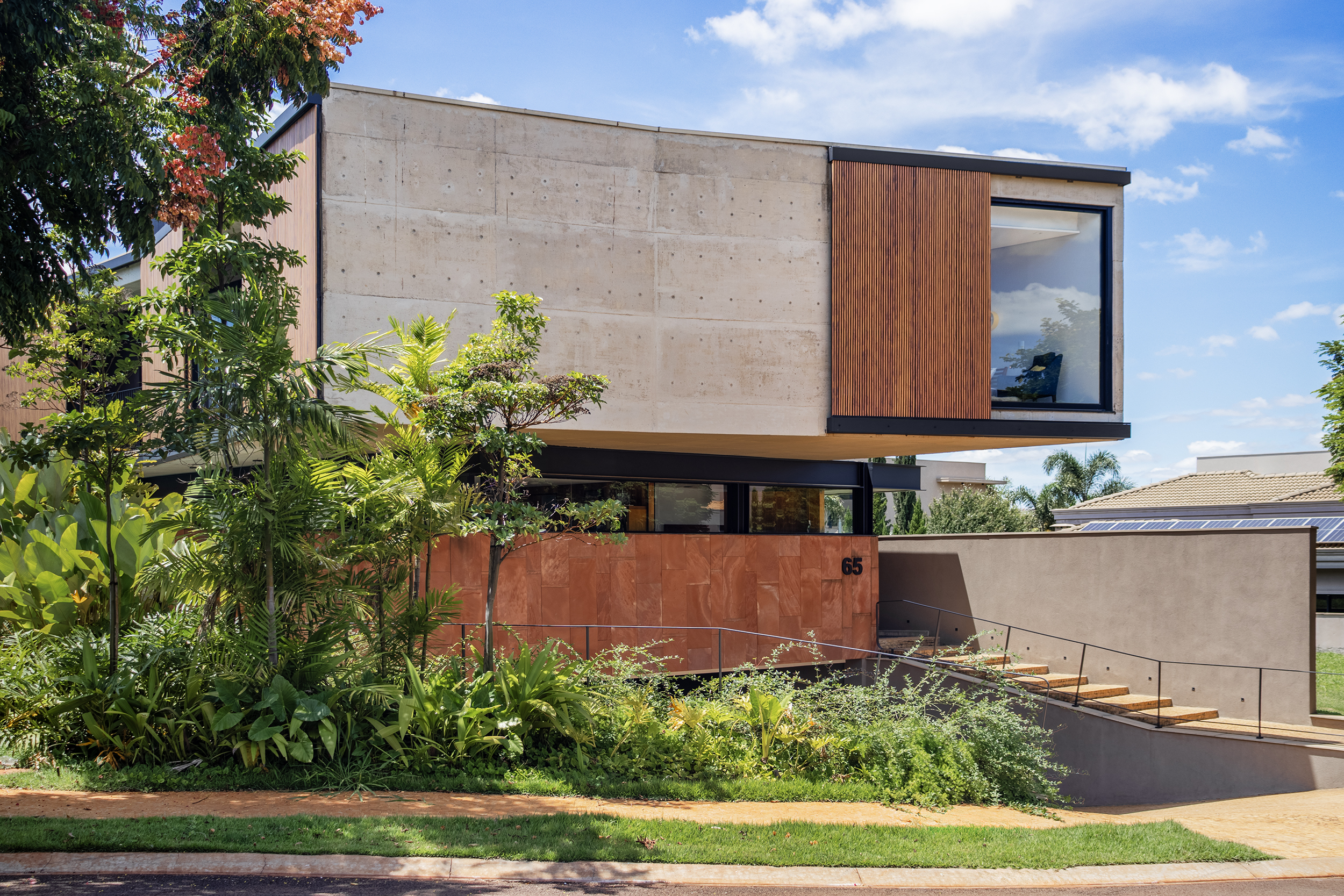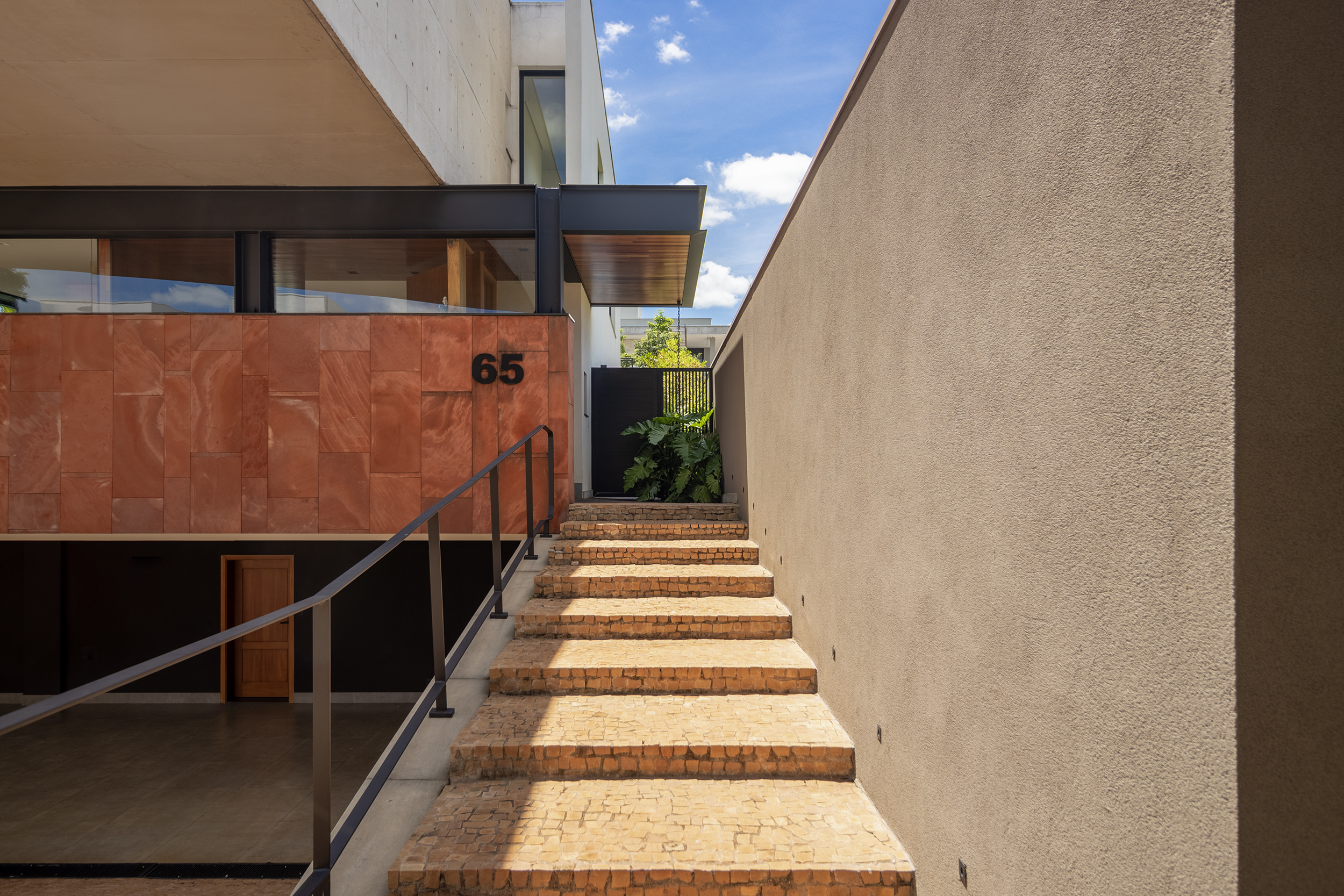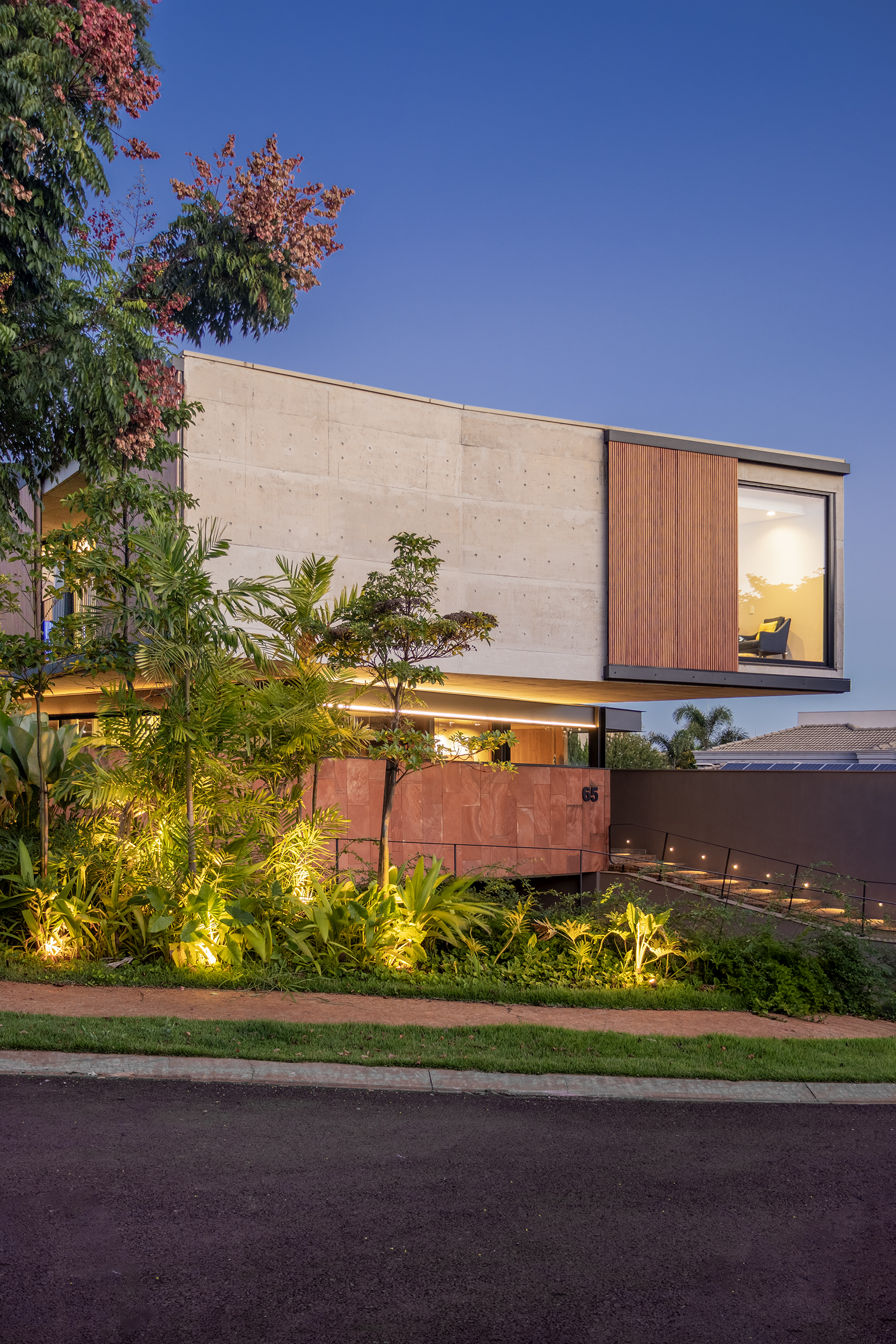 Located in Ribeirão Preto, in the countryside of São Paulo, this house occupies a plot of land with a geometry similar to that of a parallelogram with approximately 18m in front by 35m in depth. The strategy for occupying the lot aimed to create a strip built in the southern portion and an outdoor strip for the pool and backyard in the northern portion, which enjoys better sunshine conditions.