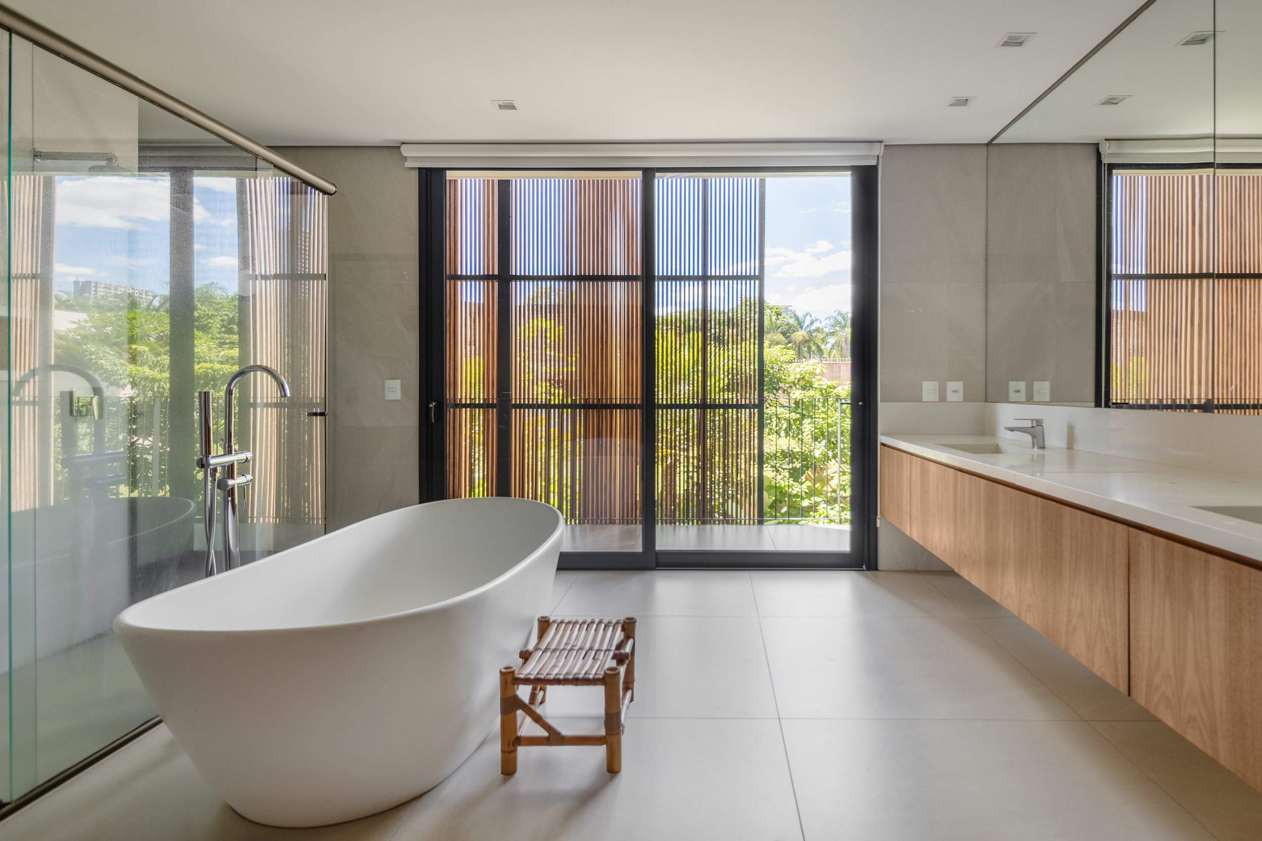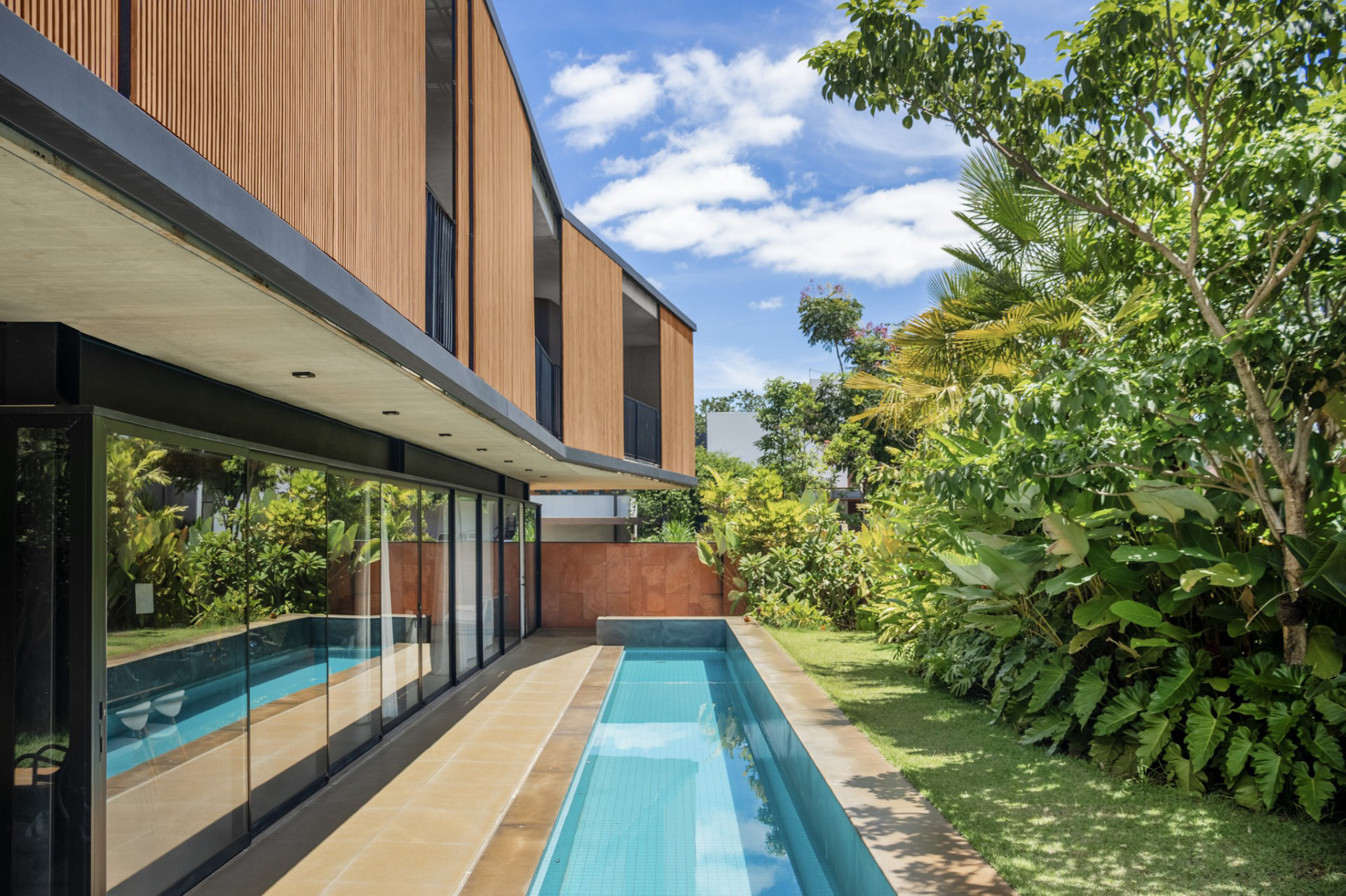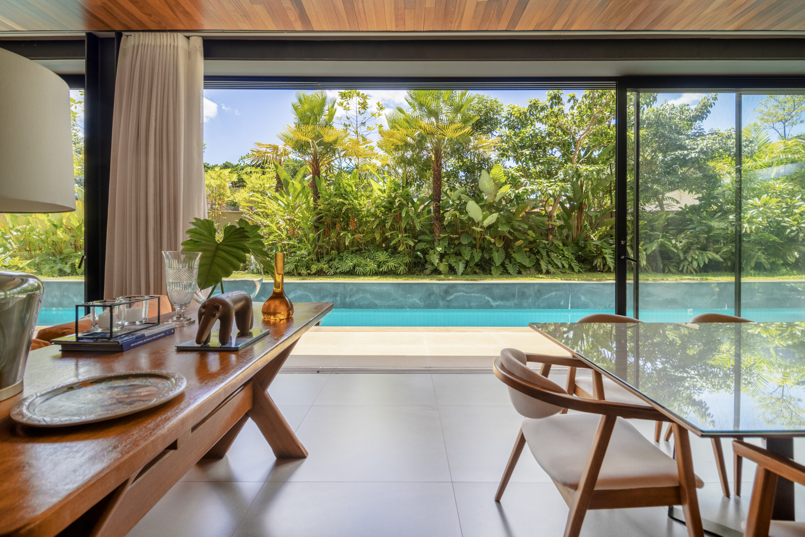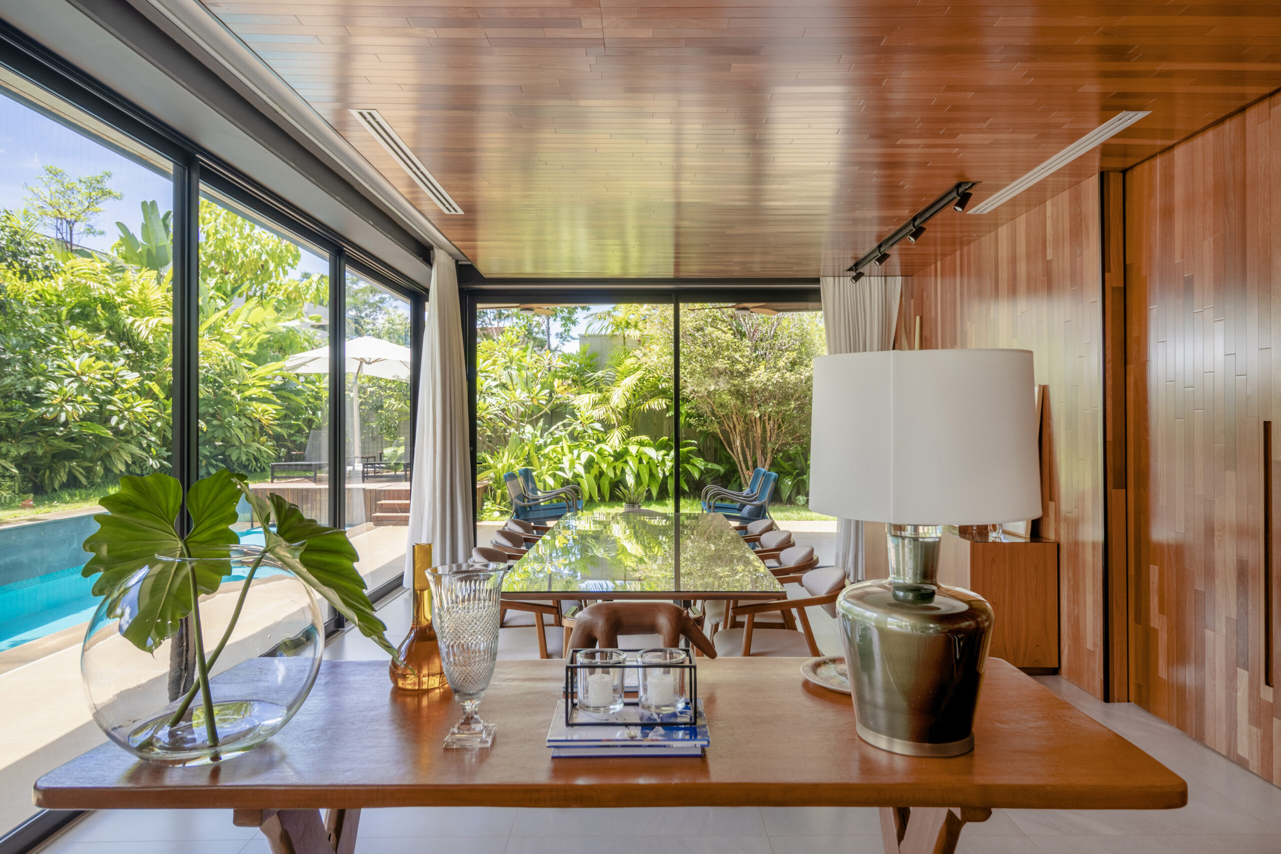 Located in Ribeirão Preto, in the countryside of São Paulo, this house occupies a plot of land with a geometry similar to that of a parallelogram with approximately 18m in front by 35m in depth. The strategy for occupying the lot aimed to create a strip built in the southern portion and an outdoor strip for the pool and backyard in the northern portion, which enjoys better sunshine conditions.