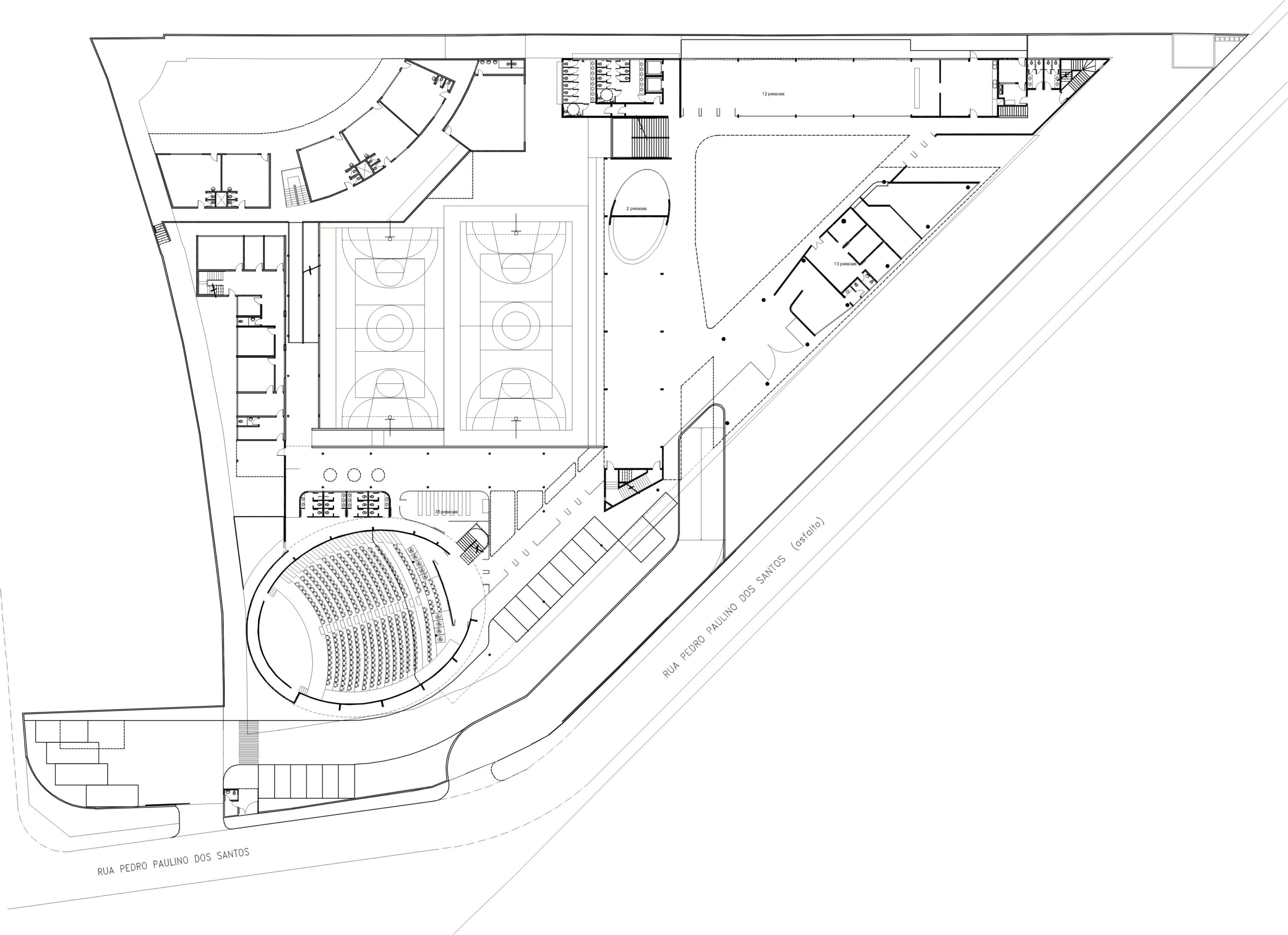 This school, which is an expansion of the institution run by the Congregation of the Sisters of Charity of Japan, is located on the southwestern outskirts of São Paulo. The existing building and the triangular configuration of the land determine the strategy of occupation of the territory.