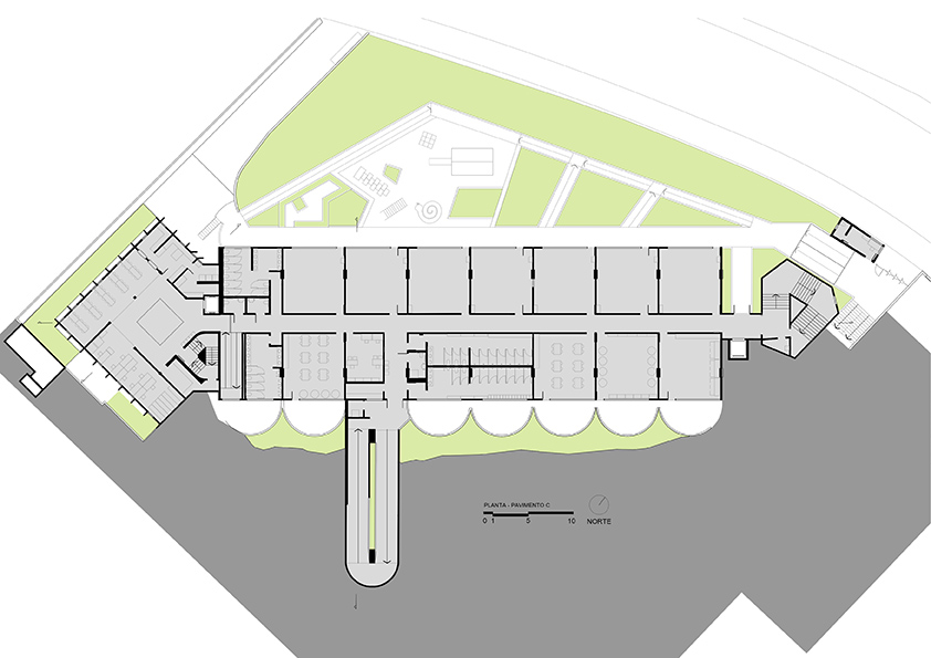 The access to this street was subject to major changes: The boarding and disembarking area was expanded and the access to the School gained institutional clarity, taking place through the administrative block, at the level of the covered patio.