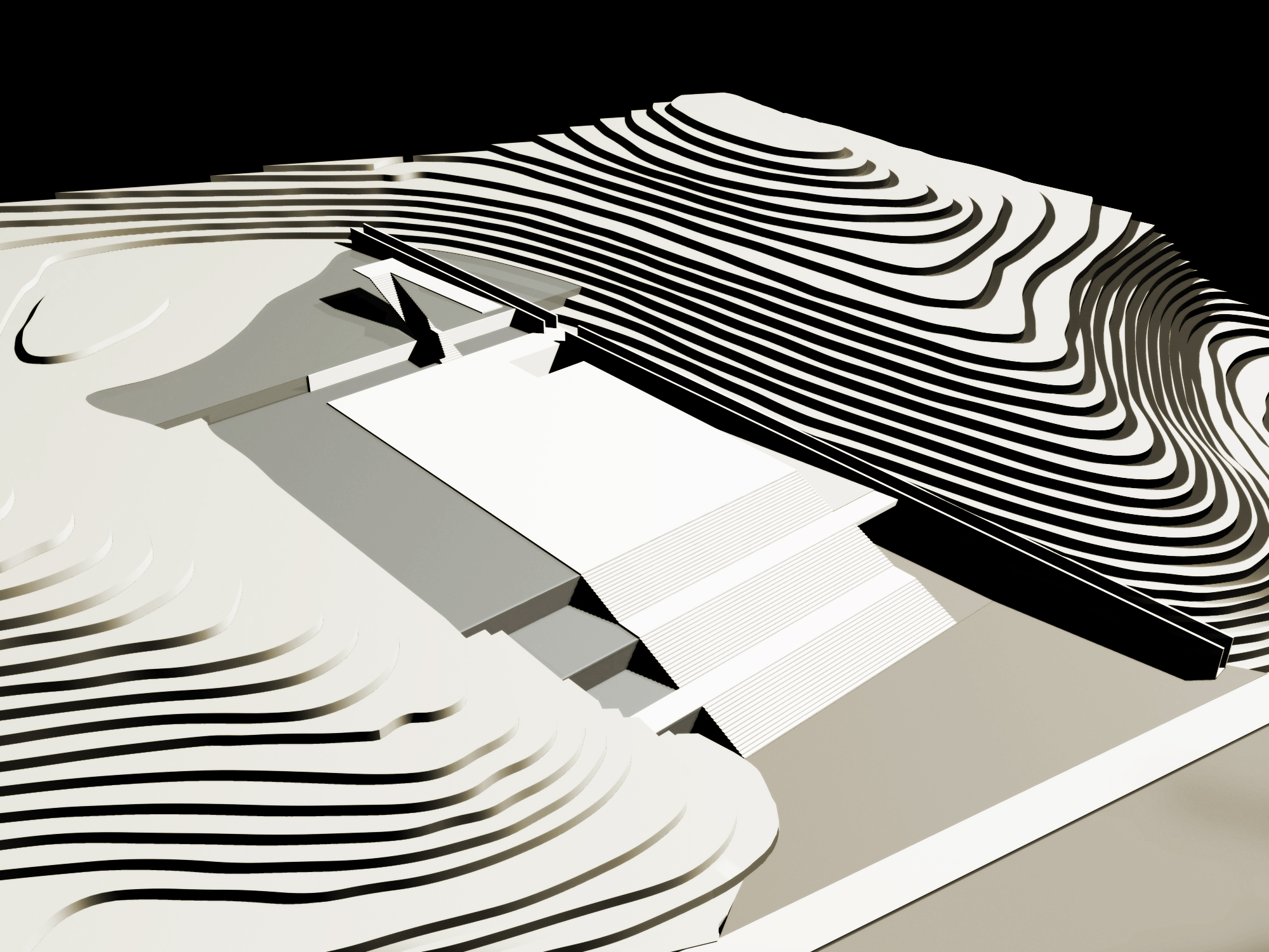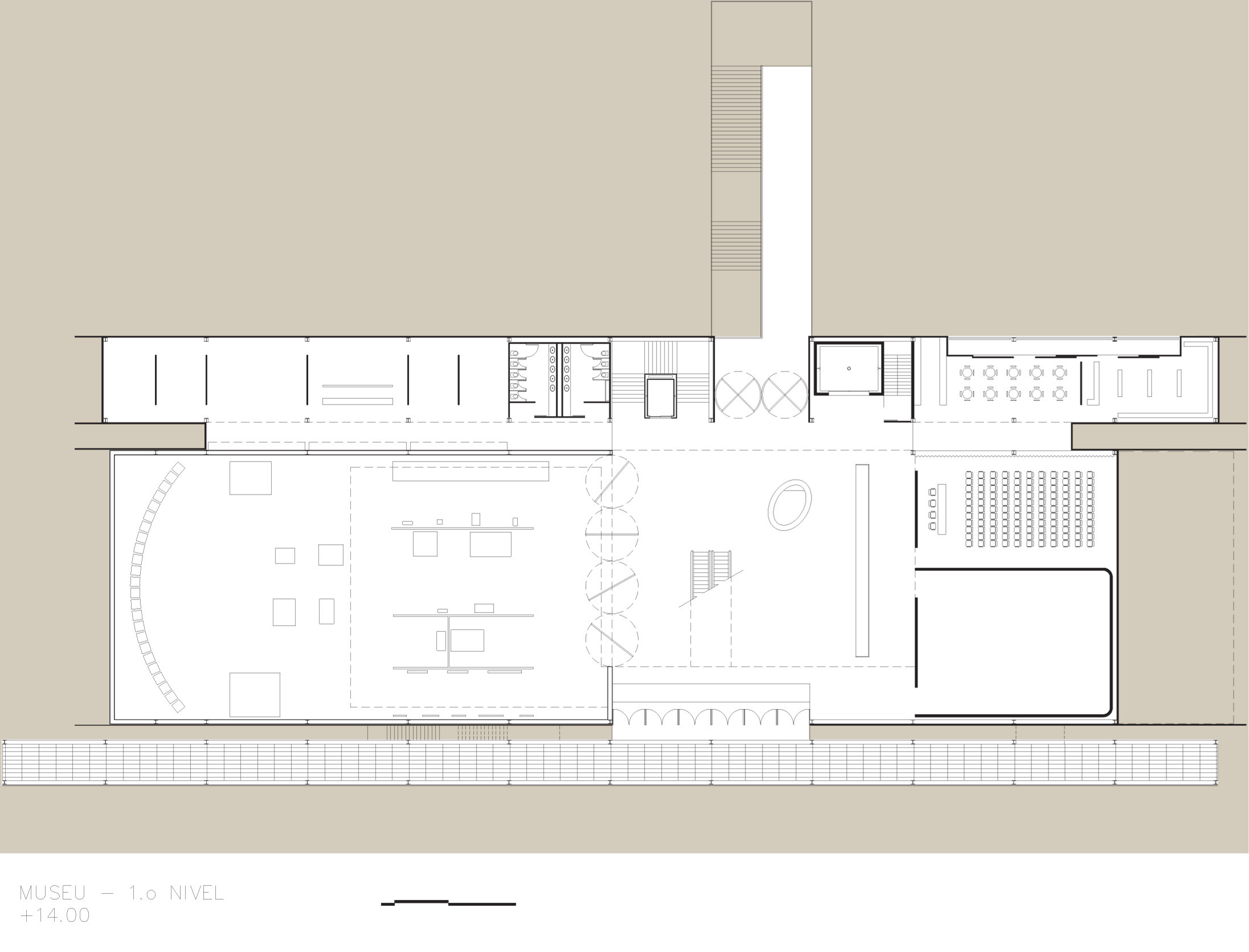 Seeking to reconcile the subsequent aspects related to the architectural/museological program and its insertion in the terrain, internal routes and connection between buildings of the NEIGHBORHOOD PARK, as well as several other technical and functional aspects, we realize that the bridge, as an architectural approach, presents an enormous amount of advantages in relation to other possibilities. The bridge is also a solution with a controlled environmental impact, since it is supported with only four support points and allows a desirable transparency for the building, in view of the surroundings and the greenery.