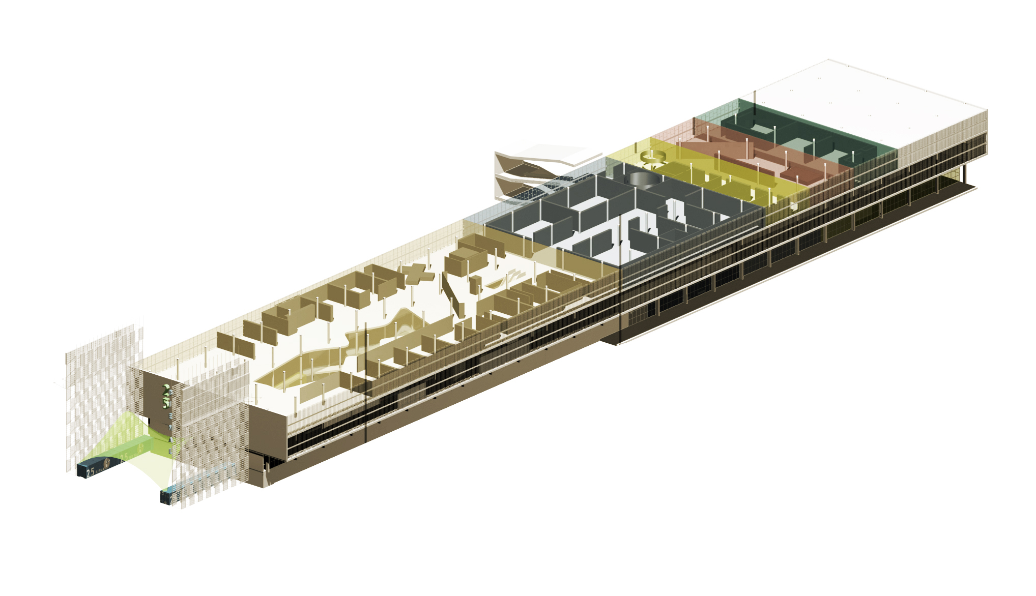 A arquitetura proposta para a XXV Bienal Internacional de Artes de São Paulo (2002) parte de uma estratégia clara de leitura e ativação do Pavilhão da Bienal, estabelecendo uma relação direta entre espaço expositivo, percurso e público. O projeto valoriza a estrutura existente como suporte neutro e contínuo, sobre o qual se organizam planos, passarelas e dispositivos espaciais que orientam o fluxo e constroem uma narrativa espacial para a exposição.