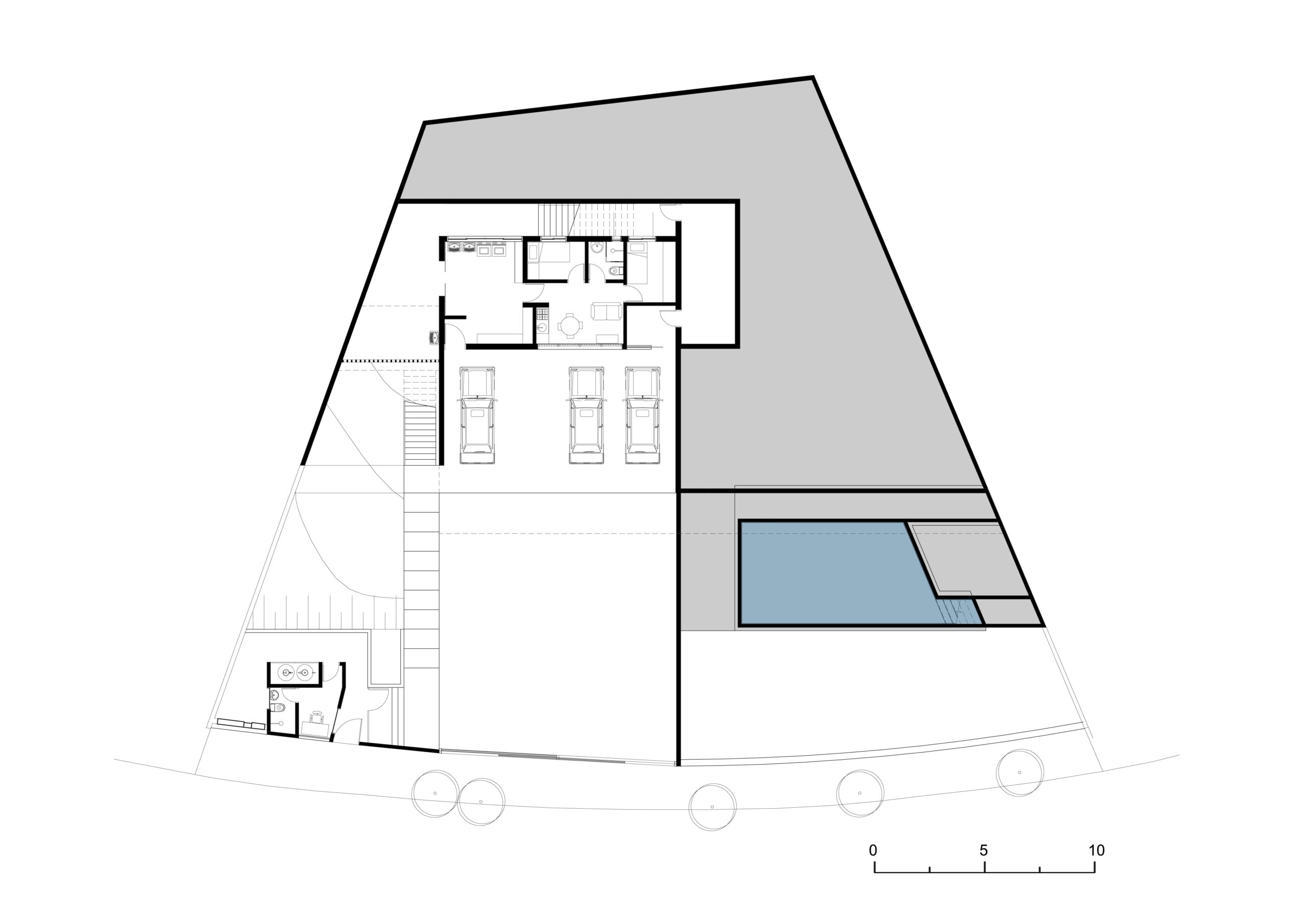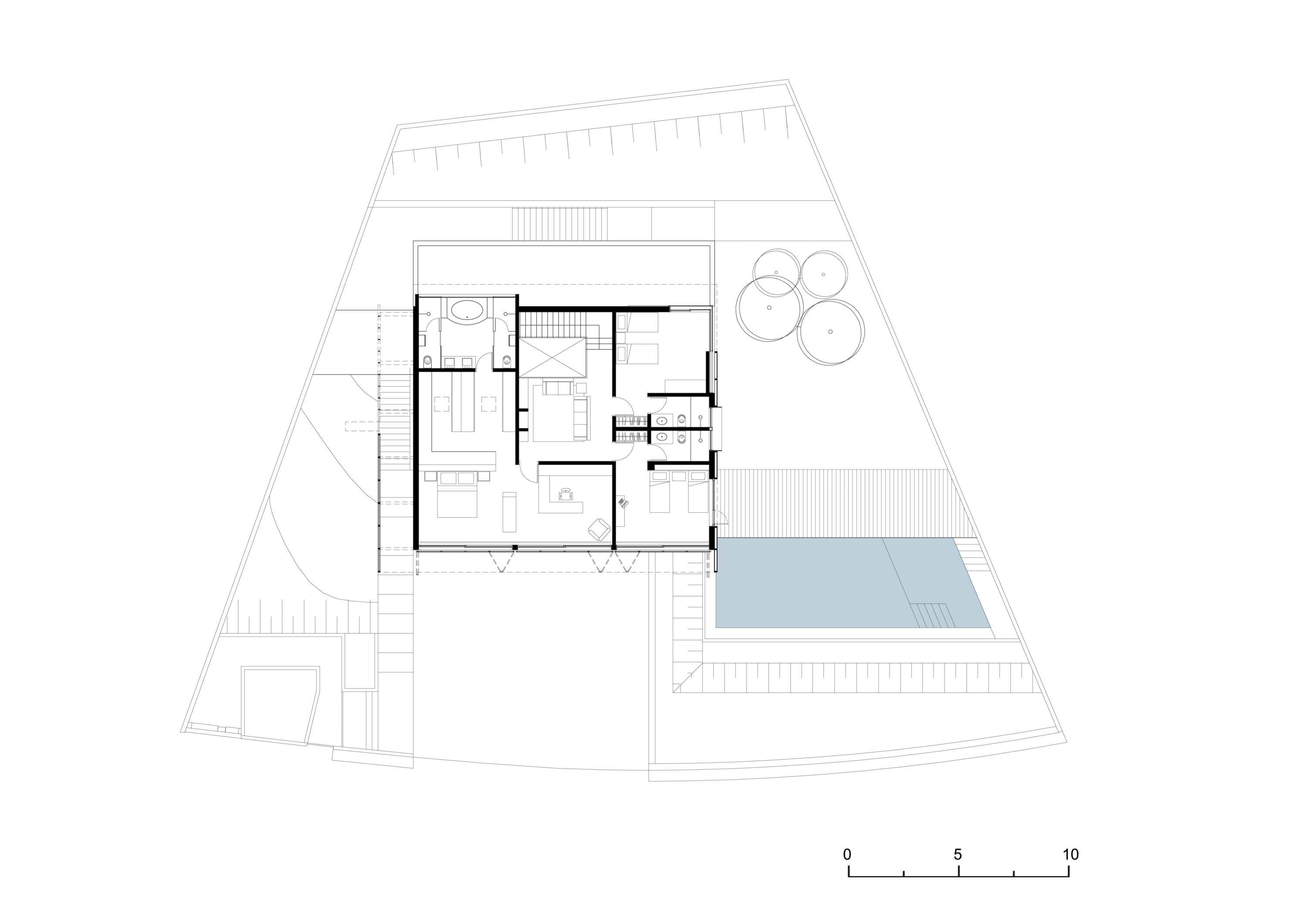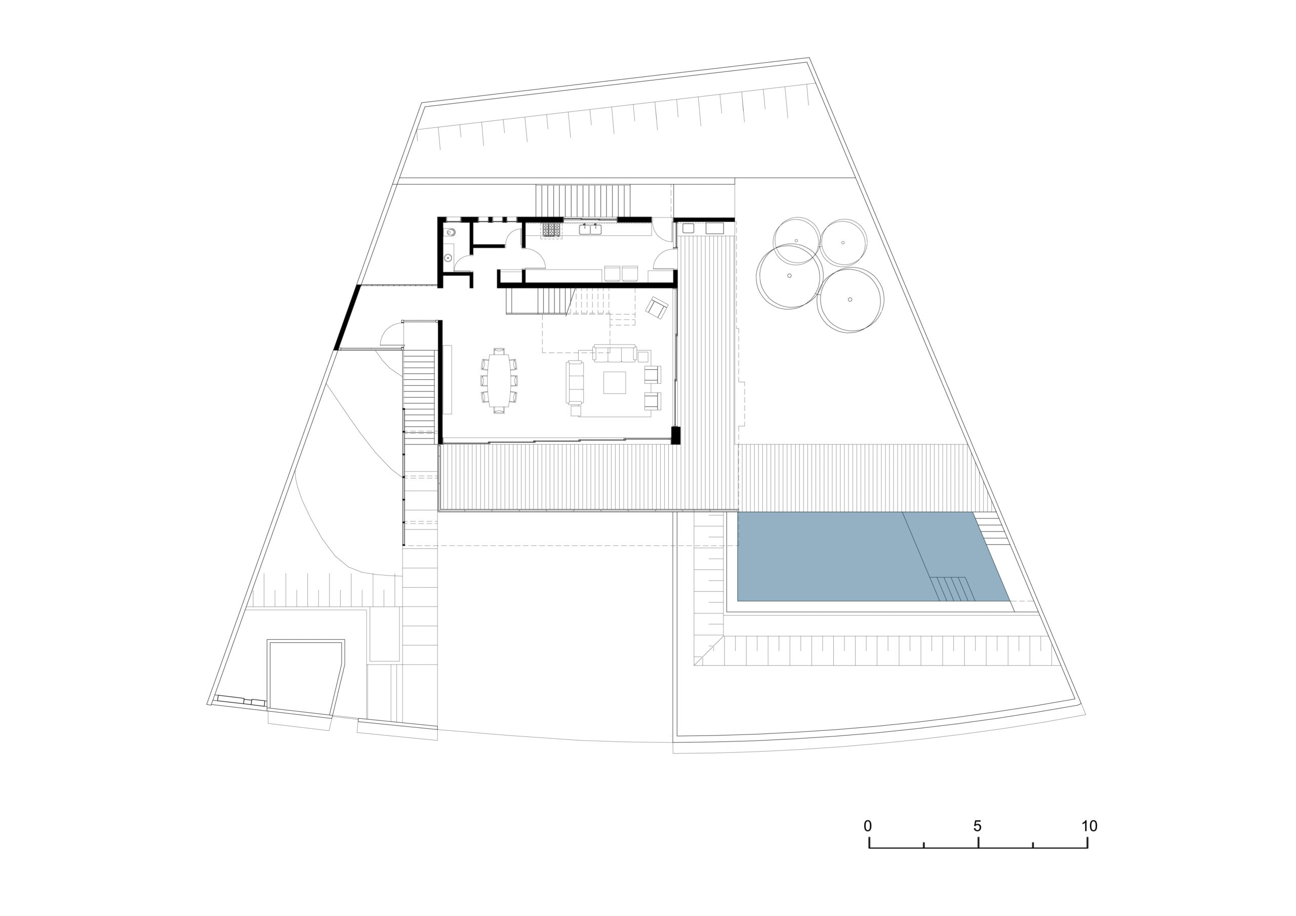 É uma casa tipicamente urbana em um terreno de aclive acentuado a partir da rua, assim o partido arquitetônico é quase uma resposta imediata às condições do lugar, o qual oferece sua maior divisa para norte e para a vista de uma extraordinária e rara porção de mata.