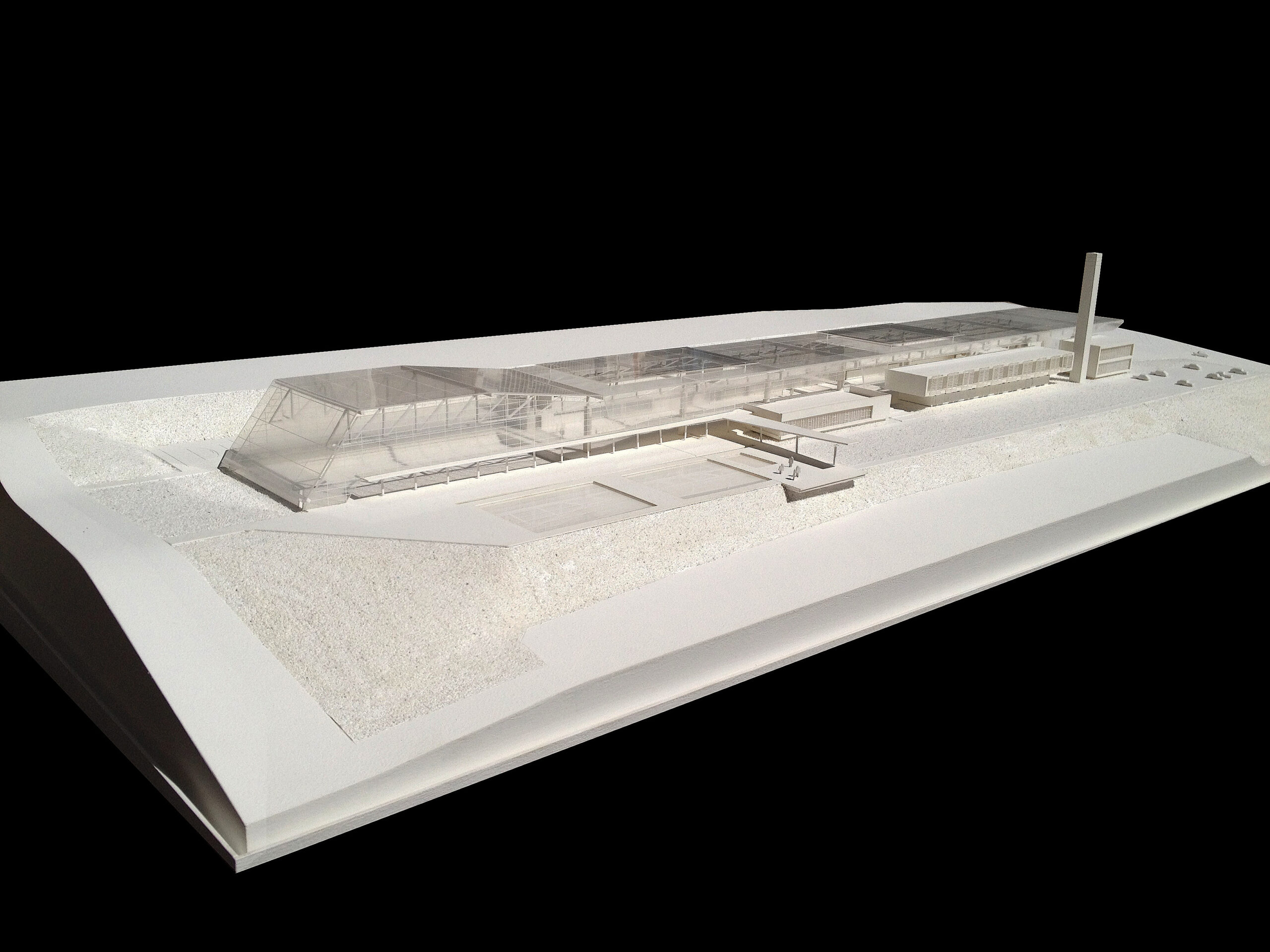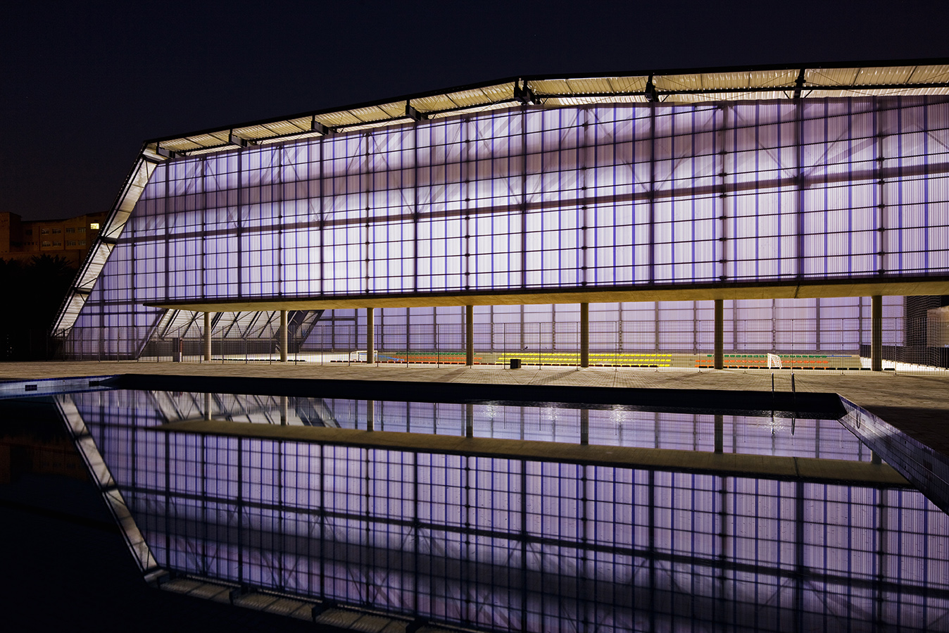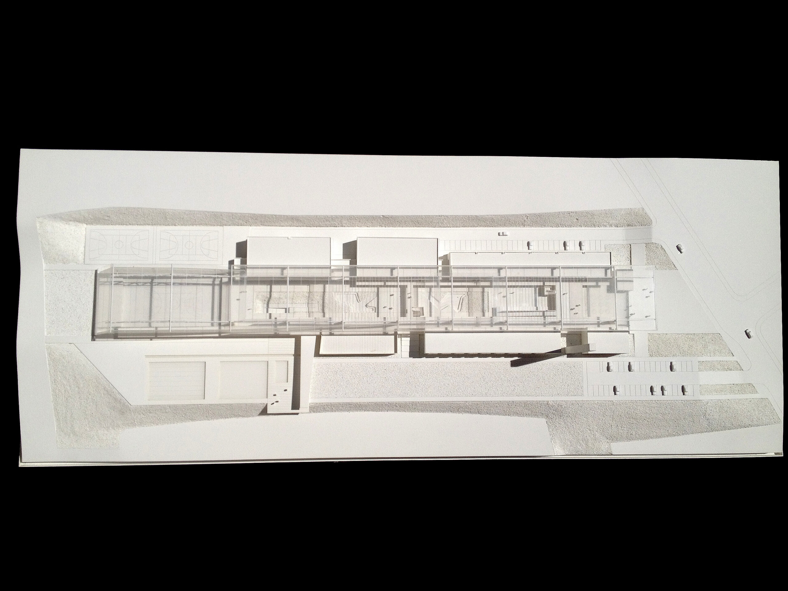 Os diversos usos se distribuem em blocos, ora em concreto pré-fabricado, ora em concreto moldado in-loco. Biblioteca, salas de aula e refeitório se localizam no lado oeste do eixo. No lado oposto, localizam-se os volumes das salas de aula, ginástica olímpica, dança e auditórios.