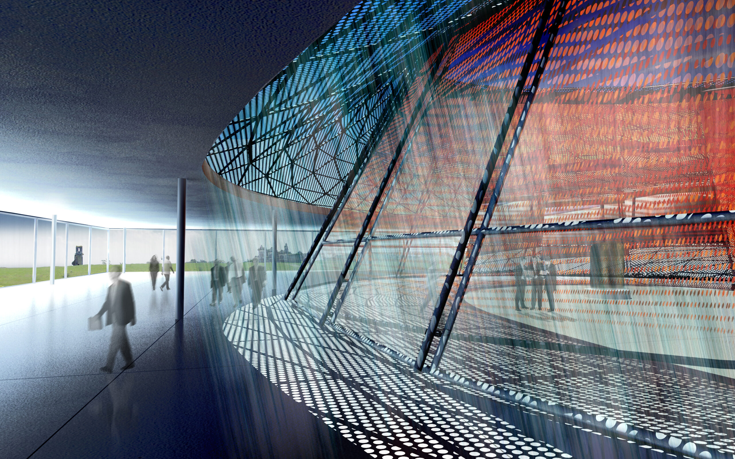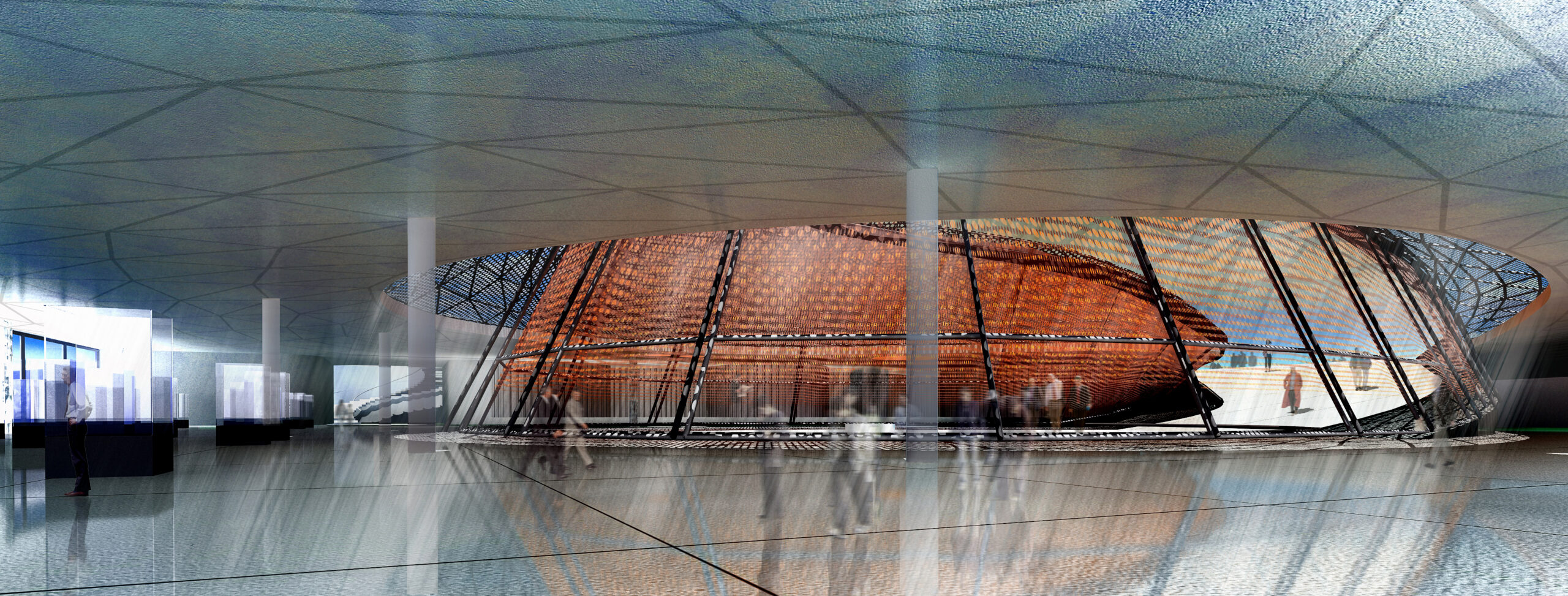 A busca de referência metafórica nas formas geológicas também encontra paralelo e nexo nos mananciais de energia proveniente das profundezas da terra, cuja exploração constitui o ofício mesmo da instituição a que o edifício se destina a sediar.