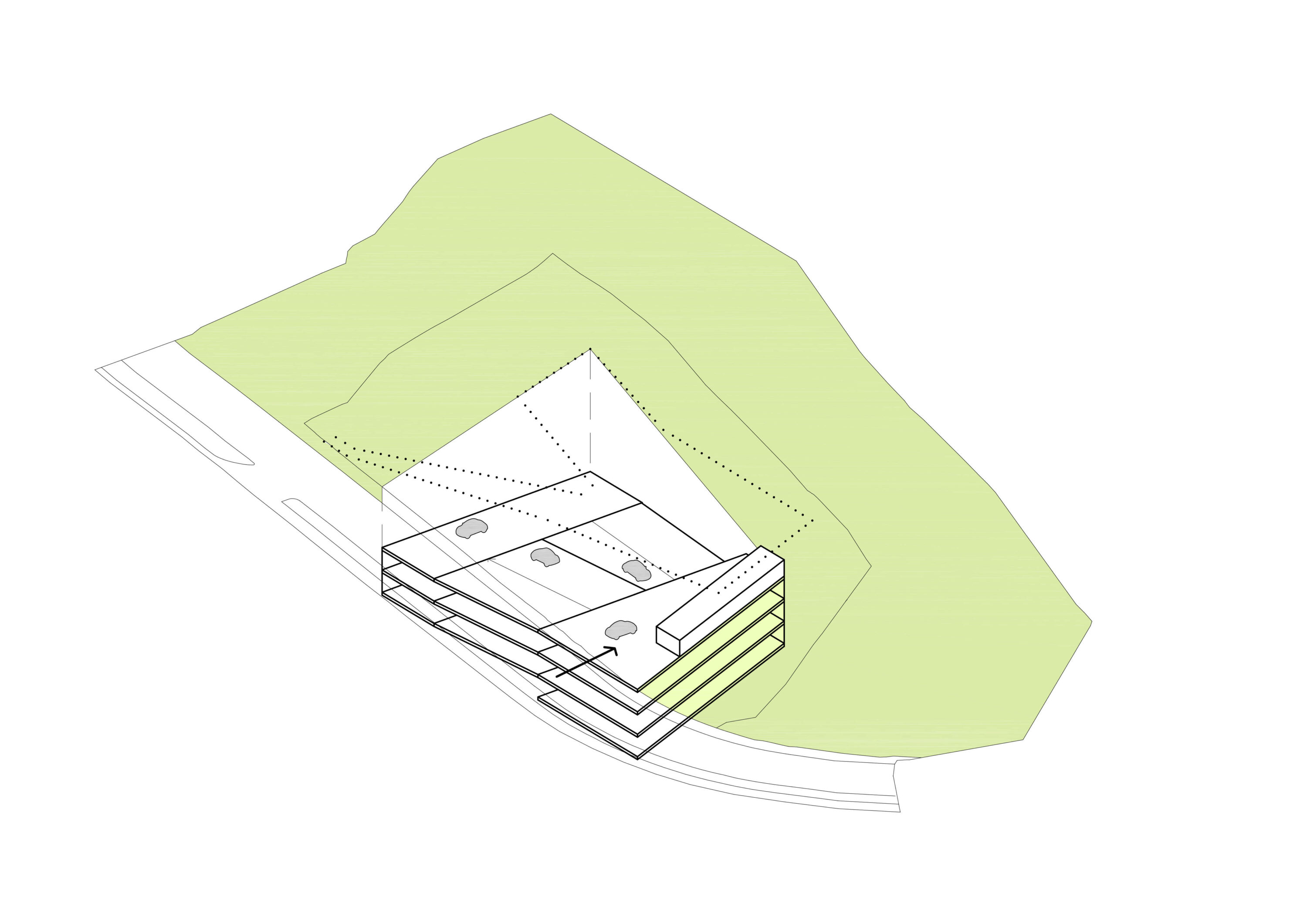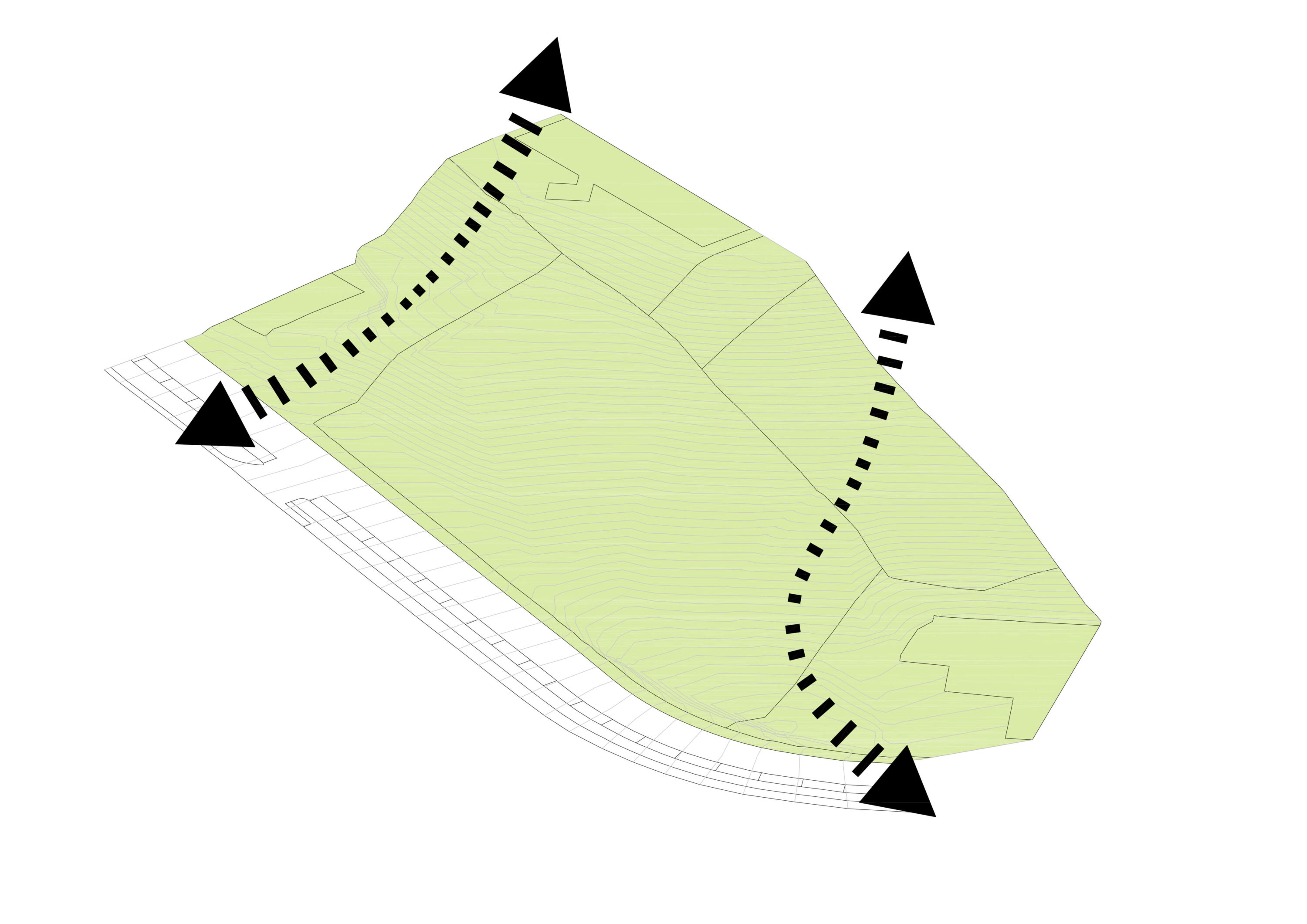 Esta decisão de projeto satisfaz a demanda pela criação de interfaces permeáveis entre o espaço público e o privado, de modo a promover a interação entre ambas as esferas *. Também serve quanto ao incentivo à diversidade e complementaridade de usos e atividades urbanos* e quanto ao respeito à paisagem e atenção aos impactos decorrentes da intervenção sobre os visuais da área, na medida em que o projeto não apresenta externamente muros de arrimo ou empenas cegas.