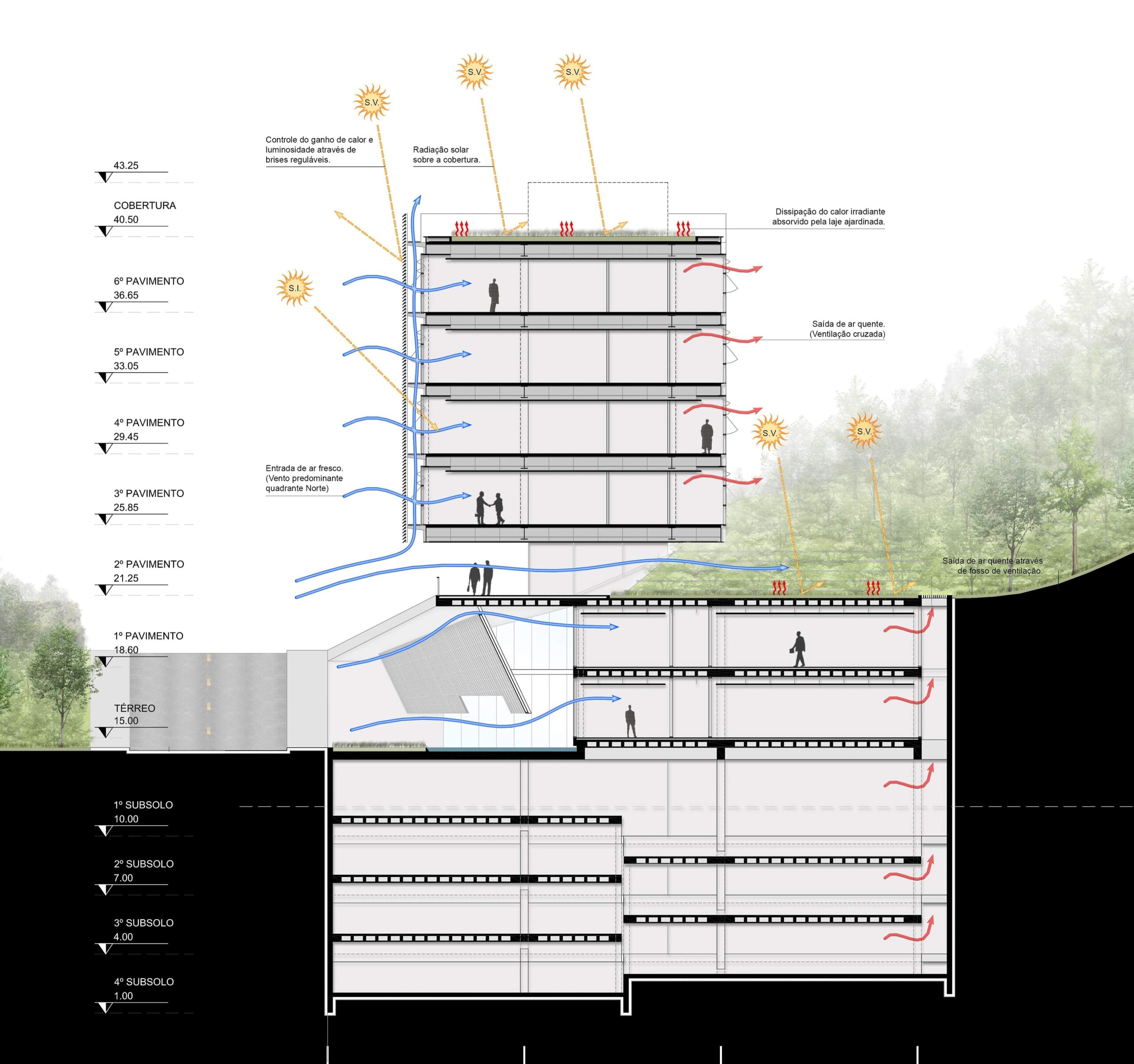 Esta nova beleza deve partir de um diálogo com a geografia, e com os percursos públicos do campus através do terreno. Deste modo, o projeto se desenha como conciliação entre estes elementos e a arquitetura do edifício.