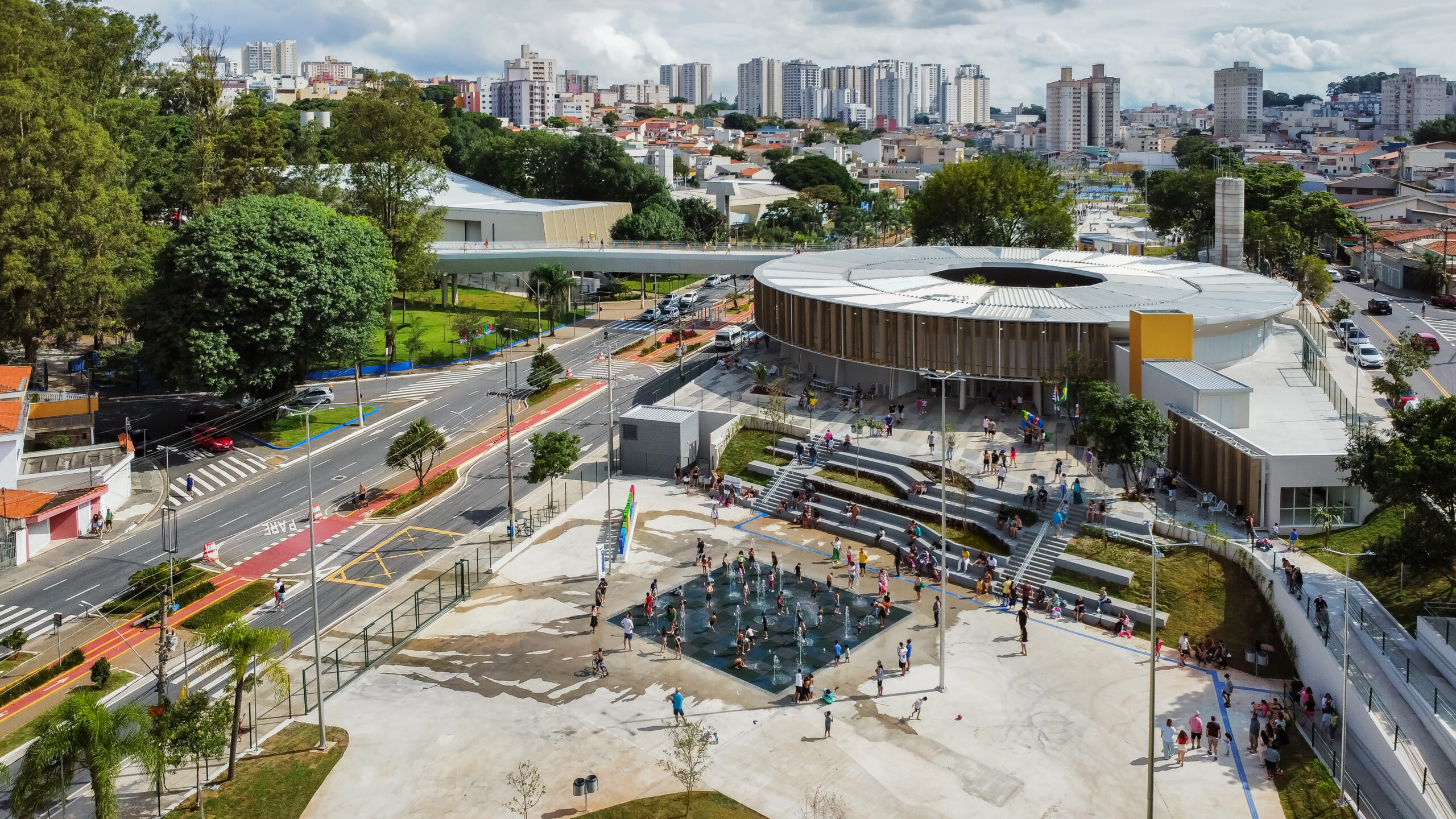 Com o Parque Rei Pelé, São Caetano do Sul ganha um espaço público contemporâneo e estruturador, dialogando com o tecido urbano da cidade. Ao criar continuidade entre equipamentos públicos, espaços livres e frentes comerciais, o projeto introduz uma nova centralidade capaz de irradiar vitalidade para o entorno e redefinir a relação da cidade com seus espaços coletivos.