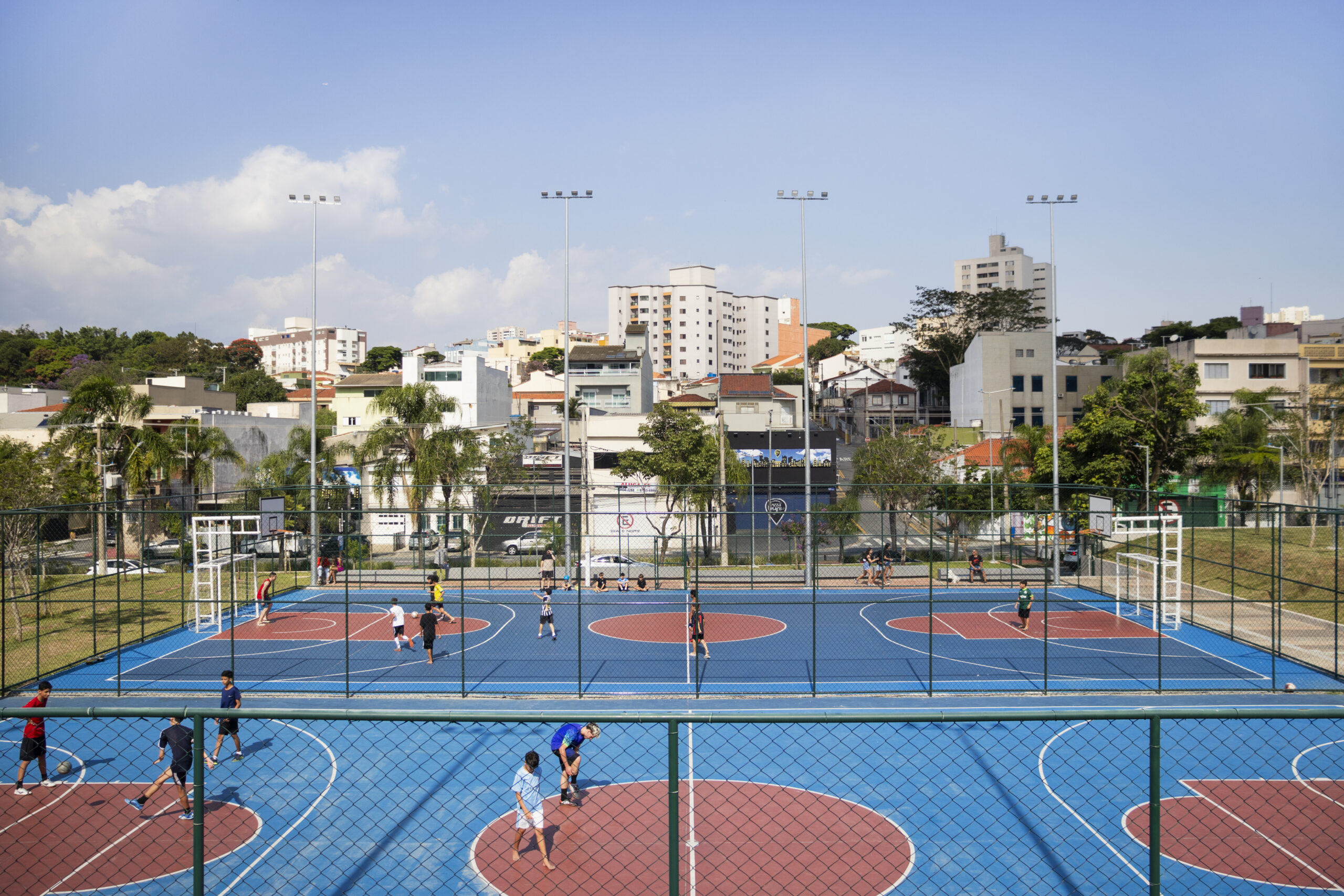 Indo além de sua função, o Parque Rei Pelé representa uma operação urbana de reconexão, entre espaços antes isolados, diferentes escalas da cidade e, sobretudo, entre as pessoas e o território. Iniciado em 2022 e concluído em 2024, o parque nasce da necessidade de dar novo uso a antigos clubes e áreas institucionais, promovendo a integração entre cultura, esporte, educação e lazer.