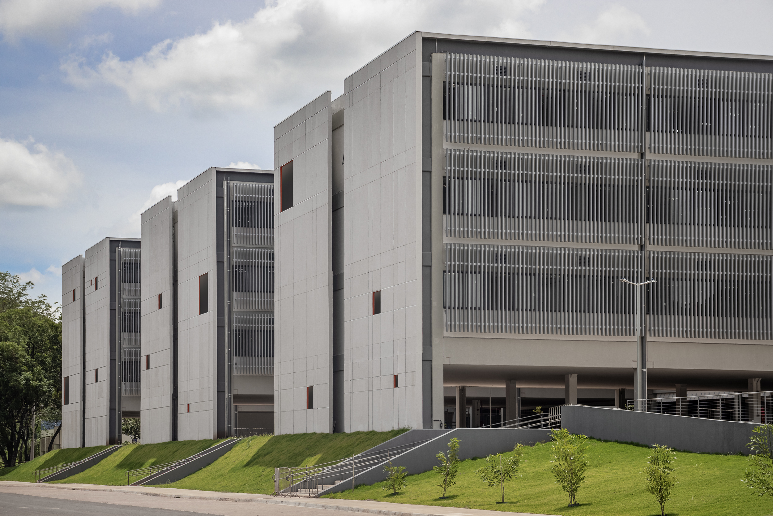 A partir de uma grande praça, que se acomoda à topografia, centraliza-se no nível térreo o acesso a todo conjunto, sob pilotis.